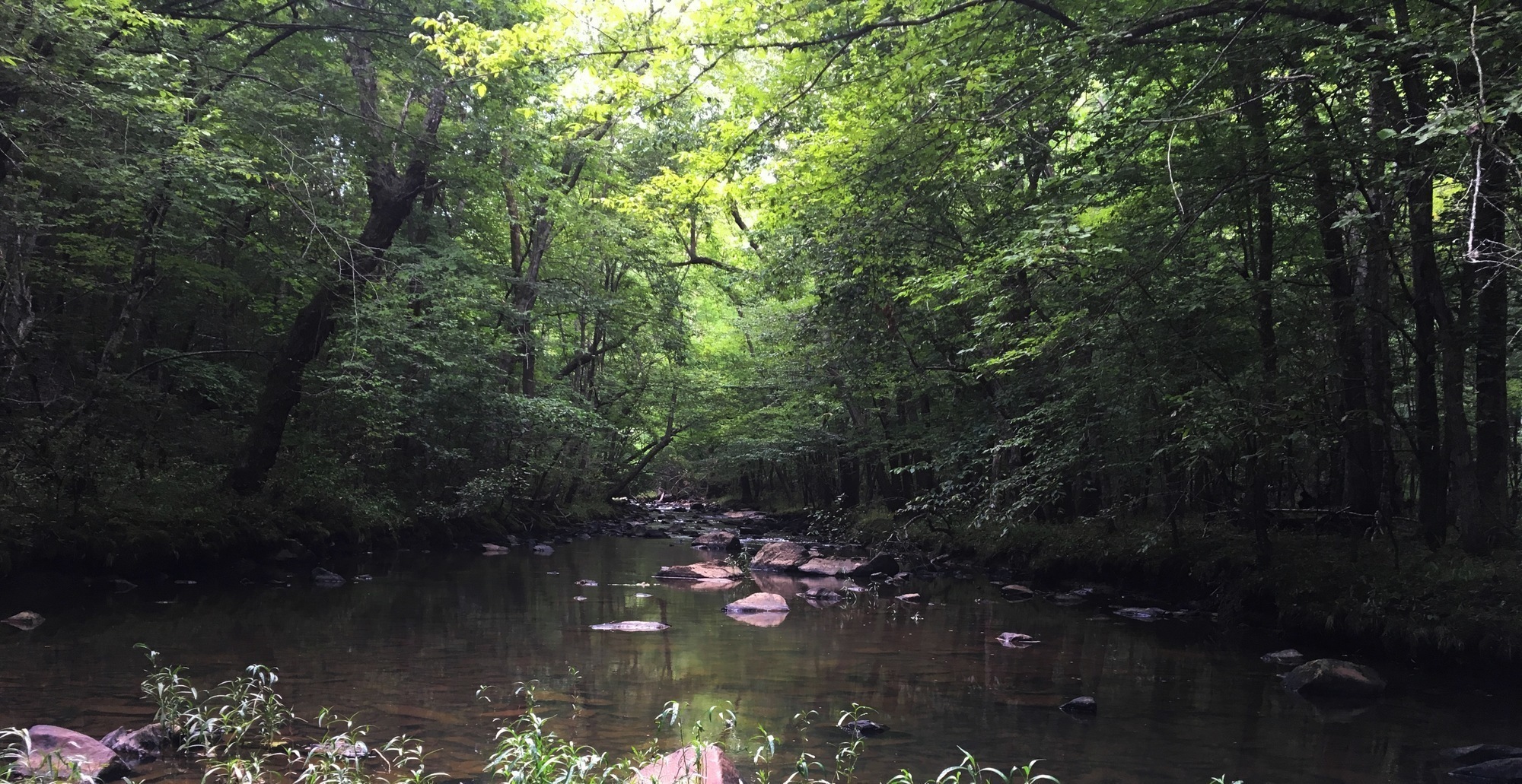 “A canopy of trees shades the North Fork Little River.”